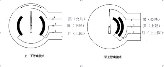 防爆電接點(diǎn)雙金屬溫度計(jì)配有電接觸裝置& mdash即機(jī)械電接點(diǎn)。當(dāng)被測(cè)介質(zhì)的溫度發(fā)生變化時(shí),自由端的細(xì)軸和轉(zhuǎn)向傳動(dòng)機(jī)構(gòu)帶動(dòng)指針和動(dòng)觸頭轉(zhuǎn)動(dòng),指示刻度盤上的溫度變化值。當(dāng)它與固定觸點(diǎn)(上限觸點(diǎn)和下限觸點(diǎn))接觸或斷開時(shí),電路系統(tǒng)中的繼電器和接觸器起作用,以達(dá)到自動(dòng)控制和報(bào)警的目的。